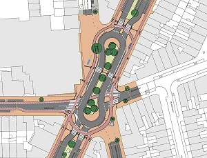 De ovonde levert de meest optimale situatie op voor wat betreft de verkeersveiligheid en doorstroming. Intechraal begeleidt in opdracht van Ingenieursbureau Den Haag het project waarbij het zwaartepunt ligt op het omgevingsmanagement. Aan het werkterrein ligt een druk bezochte winkelstraat en de ruimte voor de aannemers om te werken is gering. Prioriteit ligt bij het minimaal houden van de overlast voor ondernemers en de omwonenden gedurende de uitvoeringstermijn van 14 weken. Om het gebied toch bereikbaar te houden en zoveel mogelijk doorstroming te houden wordt het project in een aantal delen uitgevoerd. In de laatste week wordt wel de deklaag van het asfalt van de hele ovonde in één keer aangebracht in de nacht, om te zorgen voor een fraai en duurzaam geheel. De ovonde zal op vrijdag 10 juli worden opengesteld.